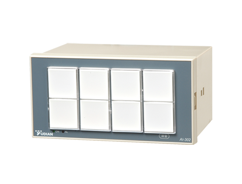 The AI-302M flashing alarm indicator uses audible and visual means to display 8 alarm signals. Its hardware is based on the AI-3 platform developed by Yudian, which processes frequency and switch signals. This platform adopts the advanced modular design of the AI series instruments, offering high reliability and facilitating mass production. It is ideal for use as an alarm signal indicator on various control panels.
